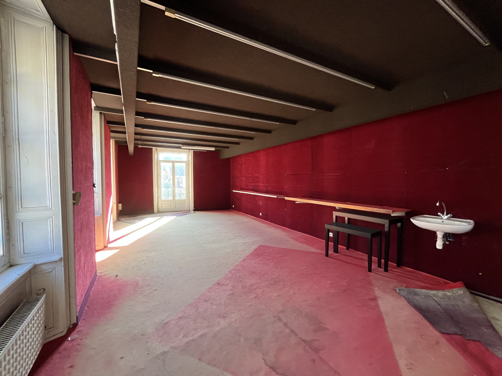 Au 1er étage : un pallier de 2m² donne accès sur une grande pièce de 38,81 m² et une autre pièce de 14,61m². (rénovation nécessaire pour créer des logements)